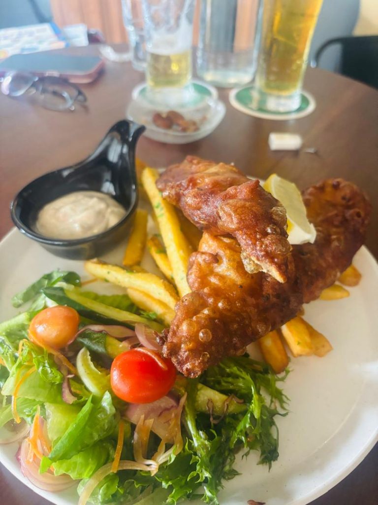 Our check in time is not available until 3pm. First we fix our stomach with comfort food, fish n chips, down with cold fresh beer.